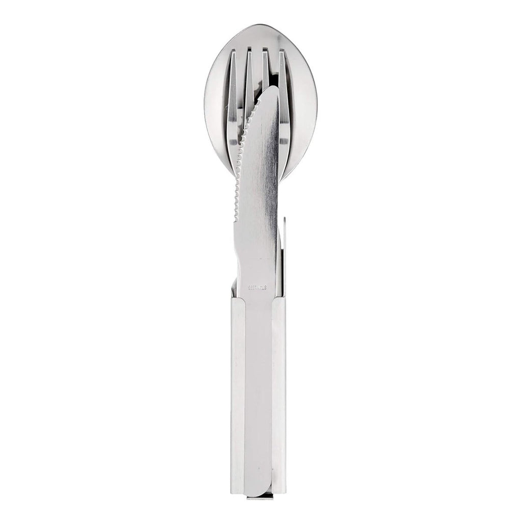 - De overgang van de ene activiteit naar de andere verloopt soepeler met deze alles-in-één oplossing. Houd je bestek georganiseerd en maak je nooit meer zorgen dat je een stuk kwijtraakt. De geïntegreerde blikopener zorgt voor extra gemak, zodat je voorbereid blijft op elke verrassing tijdens je avontuur.