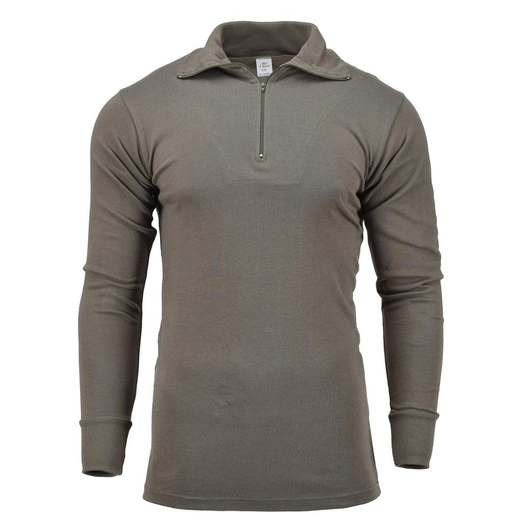 De A. Blohl Brand militaire stijl jersey is een kledingstuk met 1/4 ritssluiting aan de voorkant in de kleur olijf. Het is ontworpen met een militaire esthetiek.