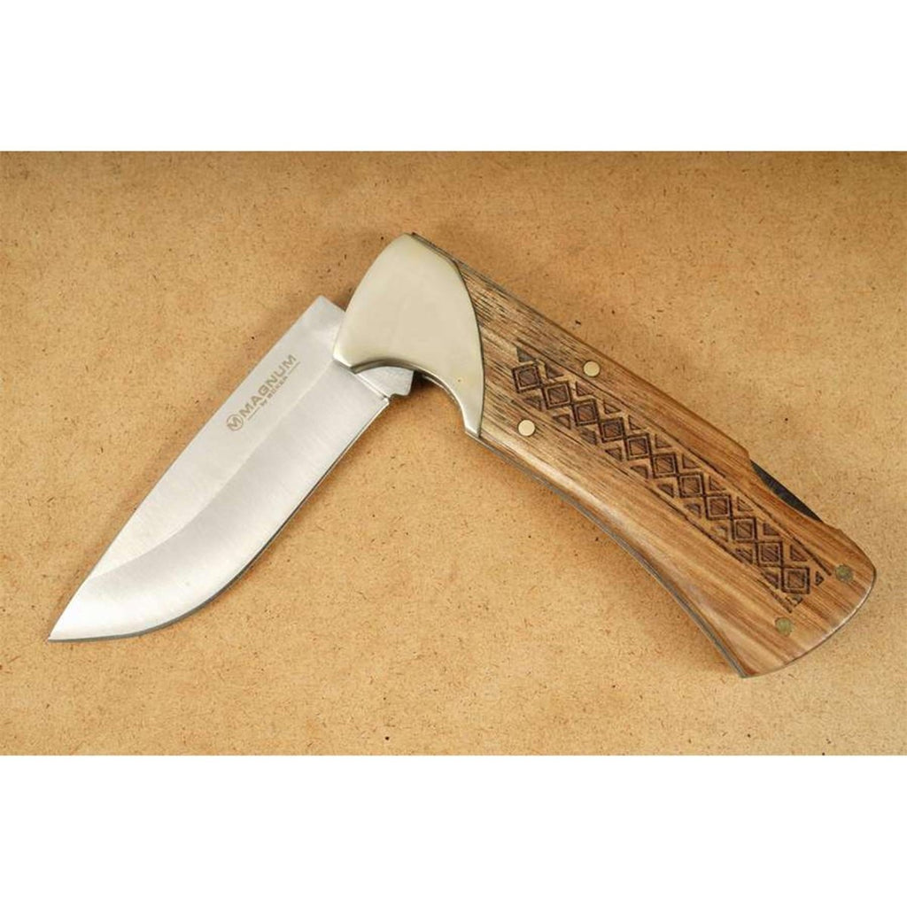 - De massief houten handvat voegt warmte en stijl toe en biedt tegelijkertijd een stevige, comfortabele grip. Elke handgreep is voorzien natuurlijke houtnerf, waardoor elk mes een uniek karakter krijgt. Het slot terug mechanisme zorgt voor volledige controle en houdt het mes stabiel wanneer het open is. Je kunt in elke situatie op dit mes vertrouwen: van buitenavonturen tot dagelijkse snijtaken.