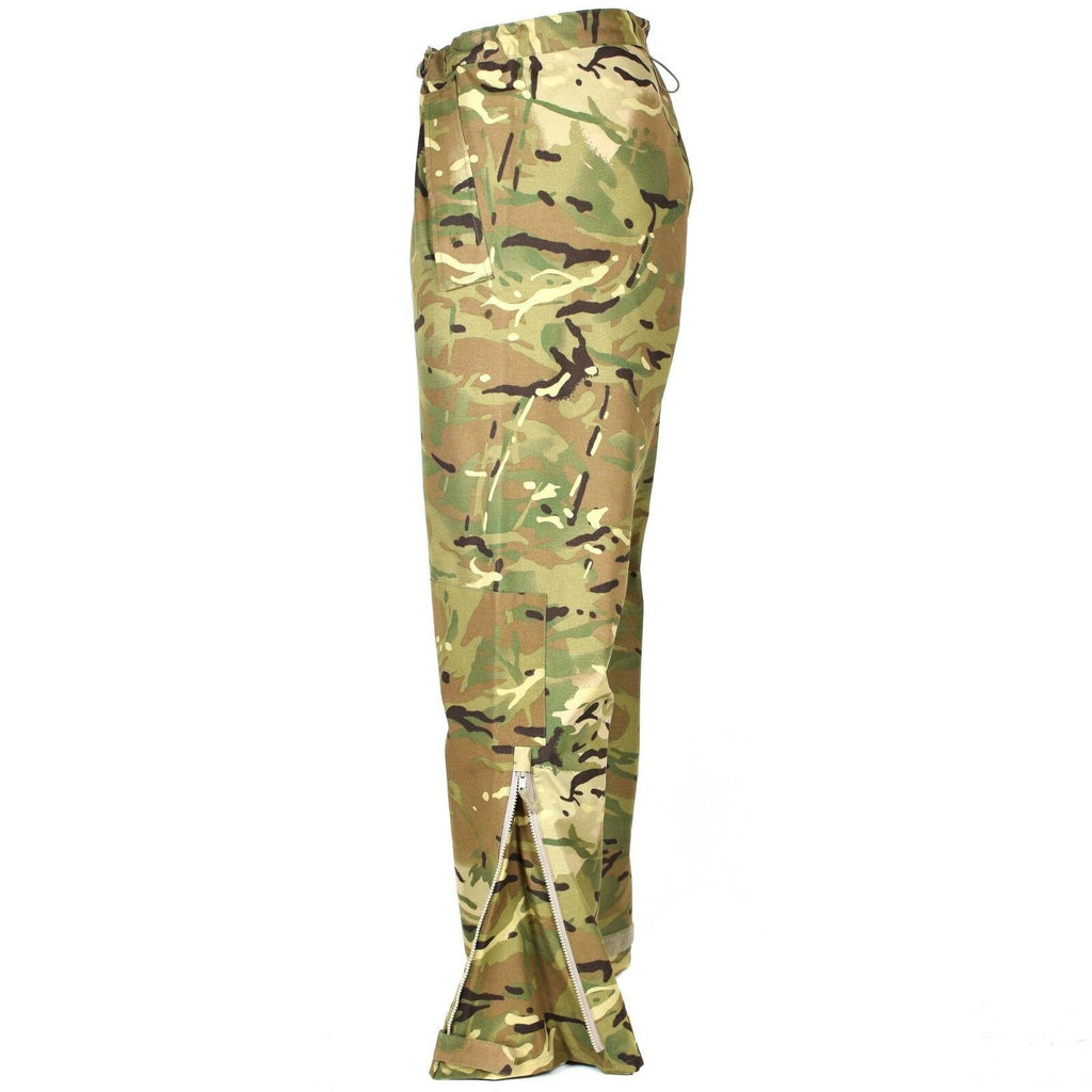 Echte Britse leger militaire gevechten MVP MTP Camo Rain Pants "-Een geavanceerd stuk militaire uitrusting die is ontworpen om uit te blinken in natte en uitdagende omstandigheden. Deze waterdichte regenbroeken, met het iconische camouflage van de multi-terrainpatroon (MTP), bieden een reeks innovatieve functies op maat gemaakt om te voldoen aan de eisen van militairen en buitenliefhebbers.