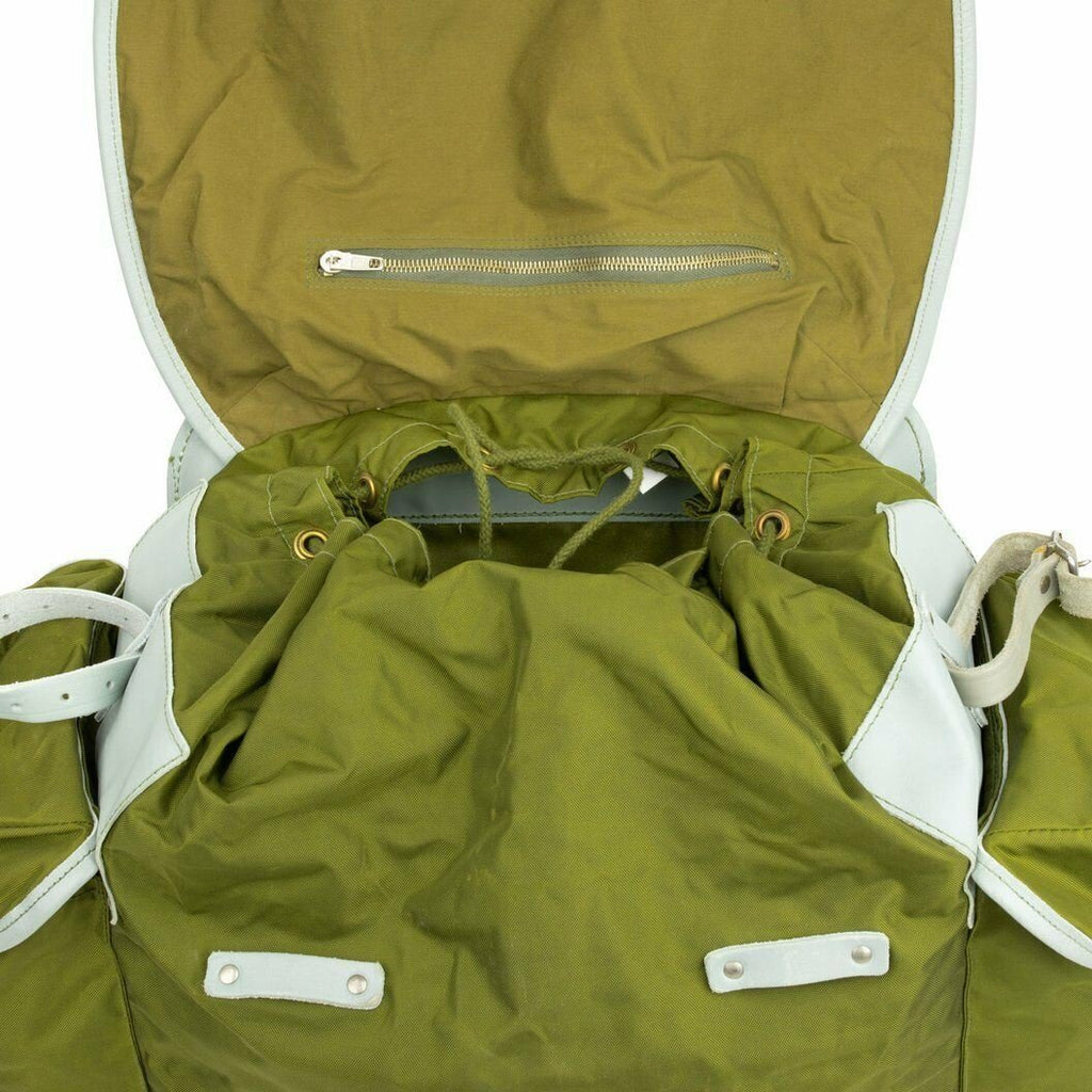 Vintage Noorse militaire rugzak met metalen frame is een duurzame en robuuste rugzak ontworpen voor gebruik buitenshuis. Het beschikt over een metalen frame dat ondersteuning en structuur biedt.