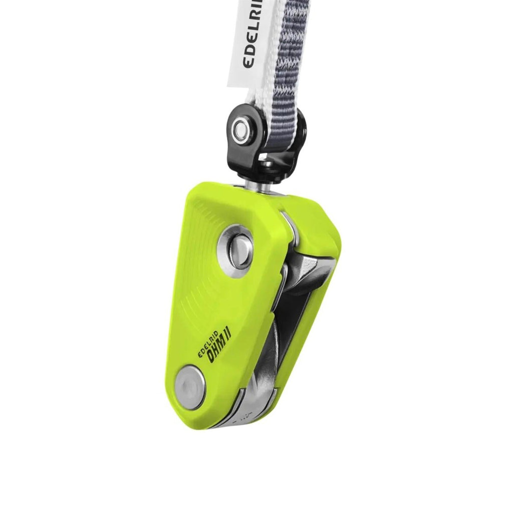 De Edelrid OHM-apparaat verbetert de zekeringsveiligheid wanneer een klimmer aanzienlijk zwaarder is dan zijn zekeraar. Het verhoogt de touwwrijving bij de eerste bout, waardoor lichtere zekeraars zwaardere klimmers onder controle kunnen houden zonder van de grond te komen.