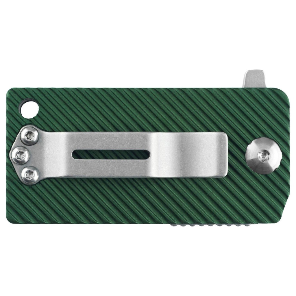 • De olijfgroen aluminium handvat voegt beide toe kracht en stijl. Het biedt een stevige grip en voelt veilig in de hand, zelfs in natte of koude omstandigheden. Je kunt hem comfortabel langere tijd vasthouden zonder te verliezen controle of precisie. Het handvat geanodiseerde afwerking verbetert ook duurzaamheid en creëert een strakke, tactische uitstraling die zich onderscheidt van gewone zakmessen.