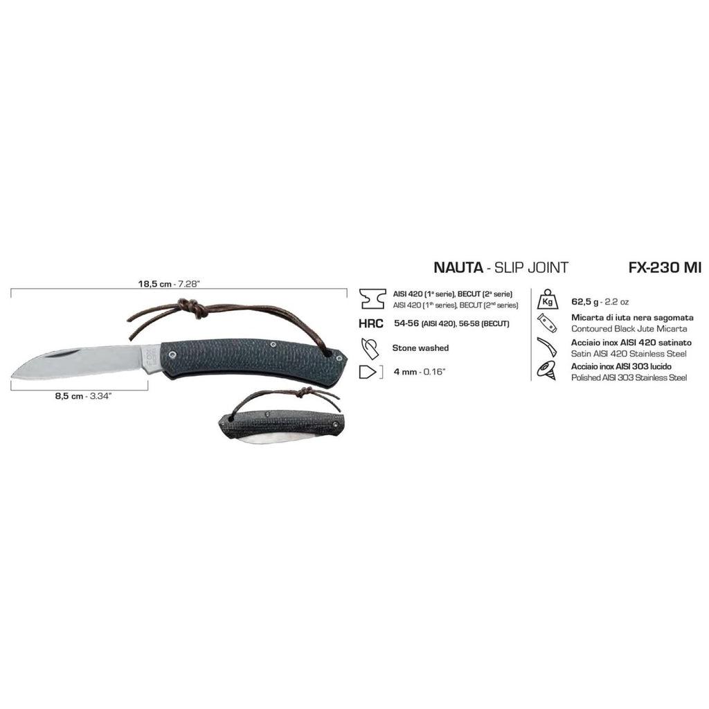 Fox Knives NAUTA compact zakmes tactisch 420C staal vouwgereedschap micarta