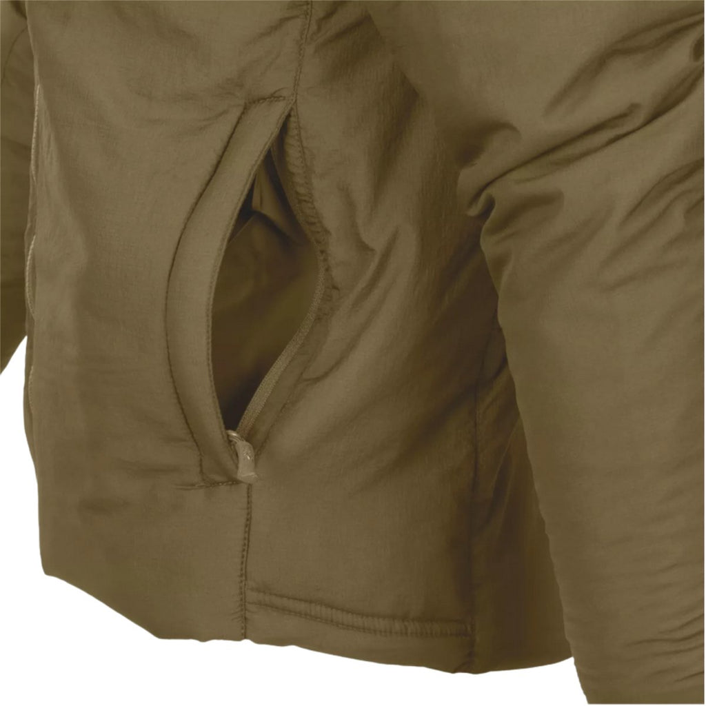 De ergonomische snit zorgt voor bewegingsvrijheid, waardoor hij geschikt is voor dynamische activiteiten zoals wandelen, bushcraft en afstandstraining. Elastische manchetten en een verstelbare zoom aan de onderkant verbeteren de pasvorm en helpen de lichaamswarmte vast te houden. Zakken met ritssluiting bieden veilige opslag voor essentiële spullen.