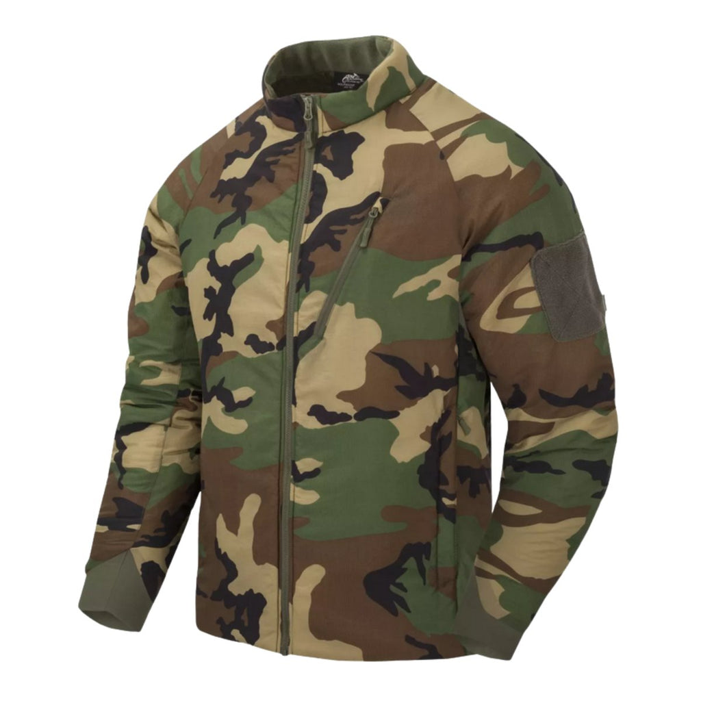 Het Helikon-Tex Wolfhound Jacket Climashield Insulation Windpack Woodland Camo is een lichtgewicht geïsoleerd jack dat is ontworpen voor buitenactiviteiten, tactische toepassingen en dagelijks gebruik bij koeler weer. Ontworpen om een optimale warmte-gewichtsverhouding te bieden, levert het betrouwbare thermische prestaties zonder de mobiliteit te beperken.