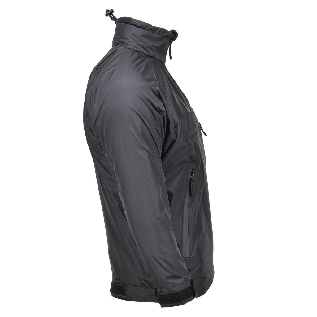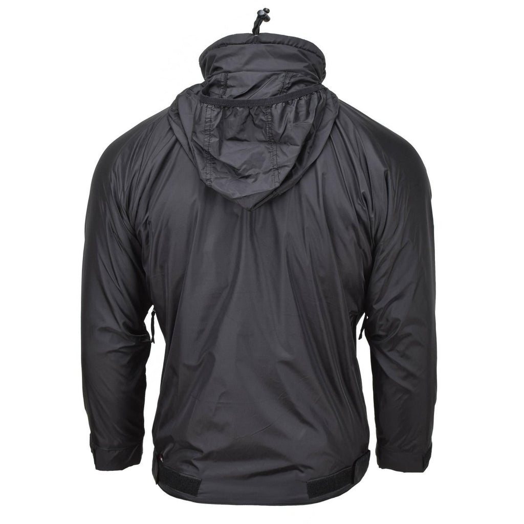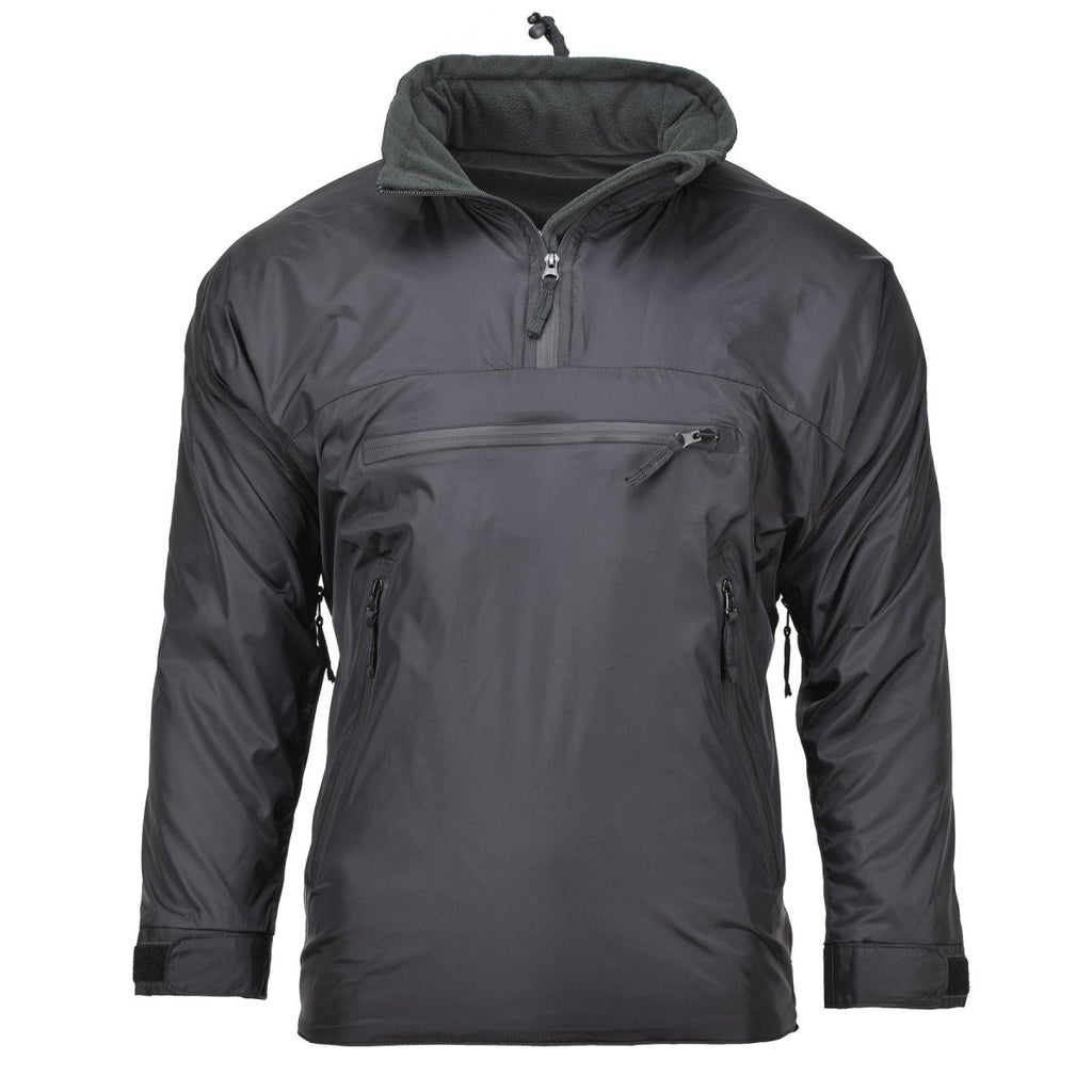Het thermische jack van het merk MFH presenteert een lichtgewicht anorakjack met capuchon in klassiek zwart, op maat gemaakt voor outdoorliefhebbers.