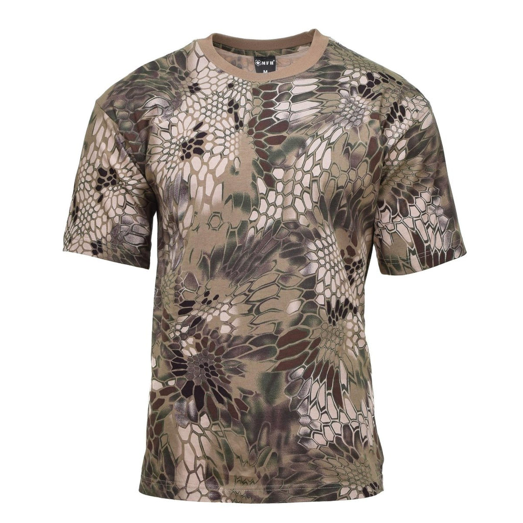 - Het ondershirt is voorzien van een FG-camopatroon met slangenprint, wat een stoere en stijlvolle touch aan je garderobe toevoegt. Dit ontwerp vergroot de aantrekkingskracht voor outdoorliefhebbers en iedereen die functionaliteit met mode wil combineren. Of je nu wandelt, traint of gewoon ontspant, dit shirt past zich aan jouw behoeften aan.