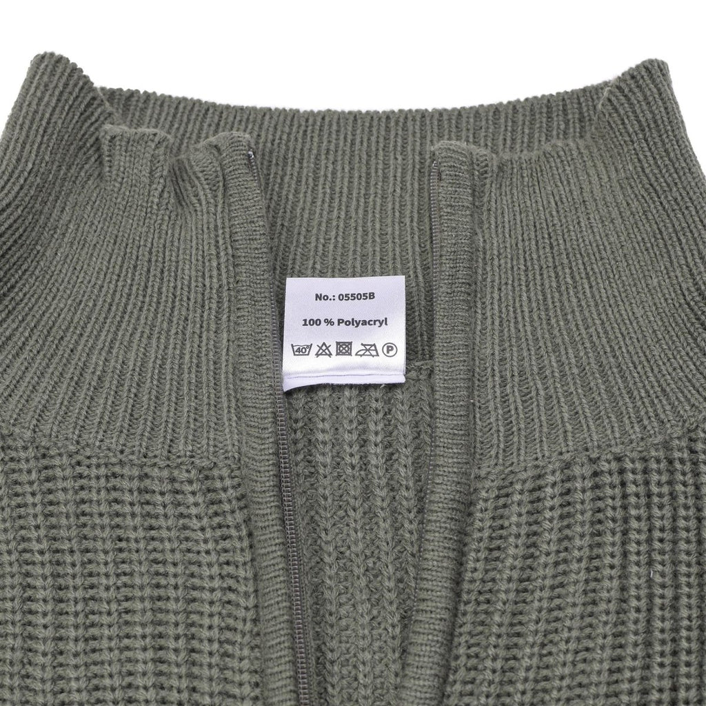 MFH -merk Troyer Style Sweater Quarter Zip Jumper Rib Gebreide Olive -pullover Nieuw