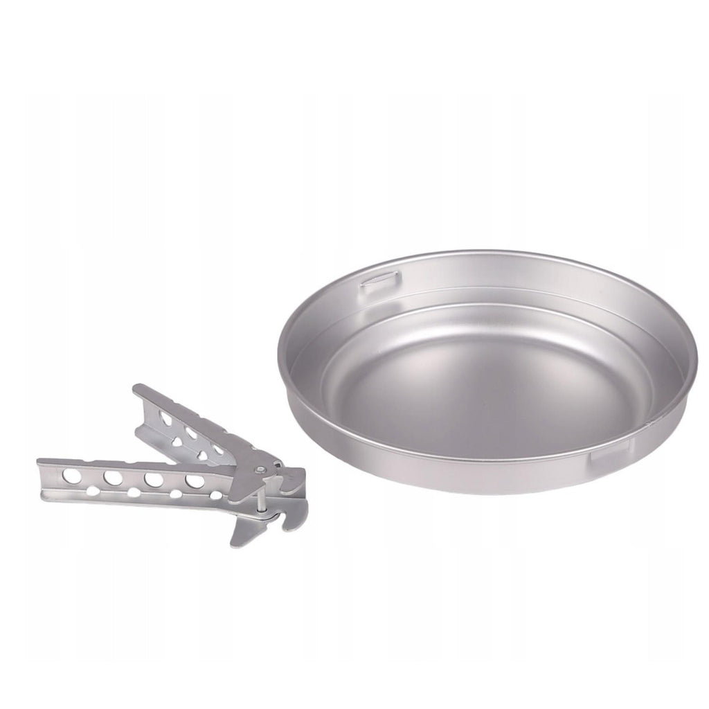 - Deze alles-in-één set heeft twee potten, een pan en een koperen brander. Alles wat nodig is om te koken tijdens kamperen of wandelavonturen. Gemaakt van lichtgewicht aluminium, de potten en pan zijn gemakkelijk te dragen en te manoeuvreren.