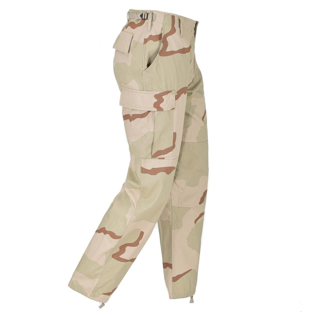 Het MIL-TEC-merk in de Amerikaanse legerstijl is een soort camouflagebroek die is ontworpen om de look en stijl na te bootsen van die gedragen door het Amerikaanse leger. Ze hebben een 3-kleuren woestijncamouflagepatroon en zijn gemaakt van ripstop-materiaal, een soort stof die bestand is tegen scheuren en scheuren. De broek is lichtgewicht, waardoor ze voor langere tijd comfortabel zijn om te dragen en ideaal is voor buitenactiviteiten. Ze bevatten ook vrachtzakken voor het opslaan van essentie.