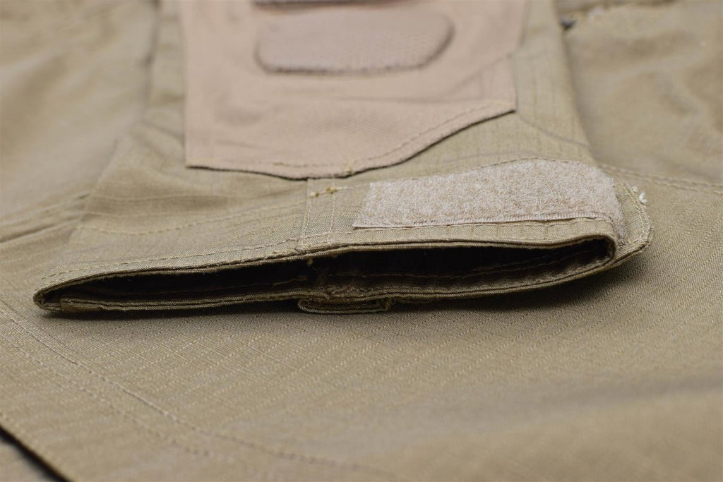 • Bovendien behoudt de achterkant een gestroomlijnde look, waarbij de nadruk ligt op mobiliteit en duurzaamheid om dynamische bewegingen te ondersteunen. Elke mouw is voorzien van extra zakken met ritssluiting en klittenbandpatches voor het bevestigen van identificatie of andere items. Gewatteerde delen versterken de ellebogen voor extra bescherming en duurzaamheid, terwijl verstelbare klittenbandsluitingen de manchetten op hun plaats houden.