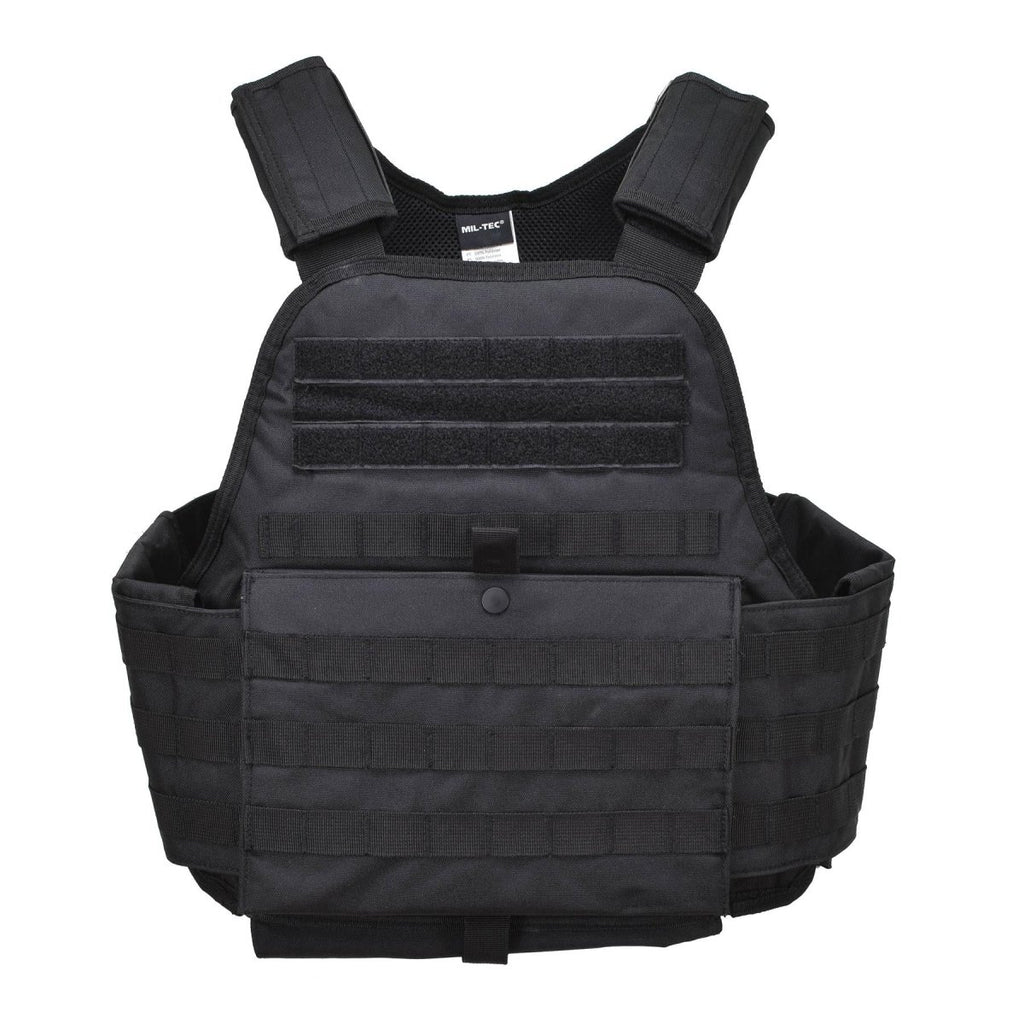 - Bovendien verhogen de polyester voering en polyethyleenschuimvulling het comfort zonder concessies te doen aan de bescherming. Met plaatvakken van ongeveer 27 x 33 cm biedt hij plaats aan verschillende ballistische platen.