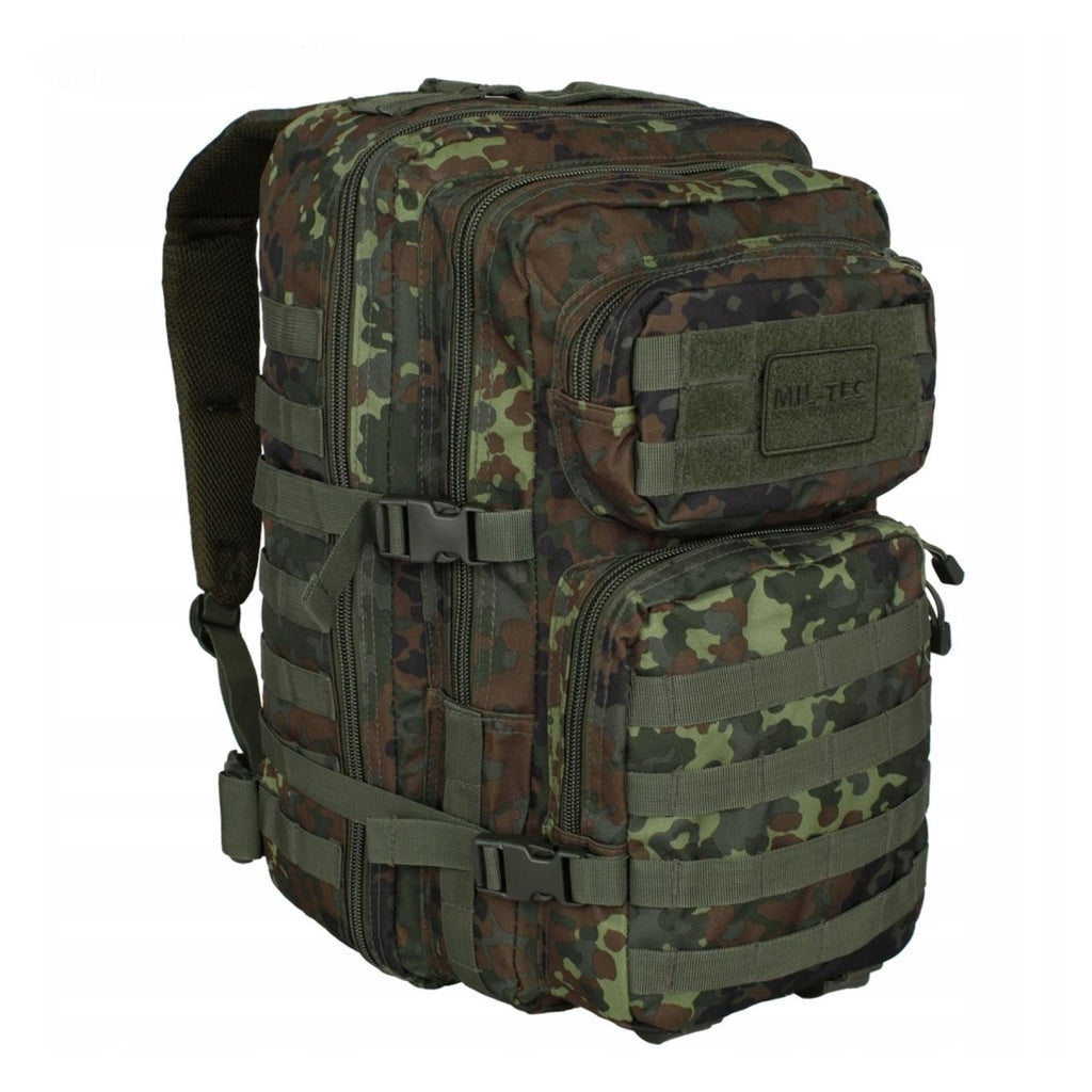 Maak kennis met de MIL-TEC US Assault flecktarn-rugzak, een duurzame en veelzijdige rugzak voor buitenavonturen en tactische operaties.