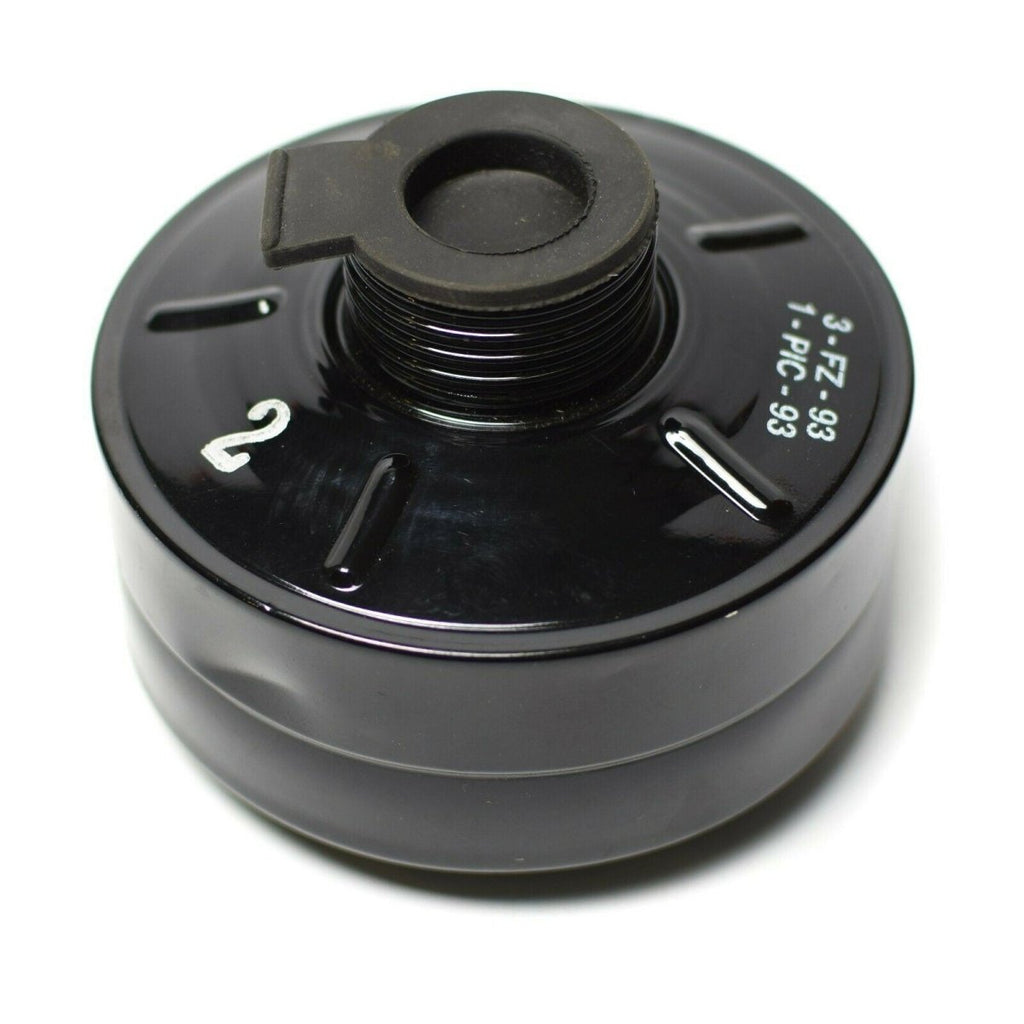 - Met zijn universele schroefdraad van 40 mm past dit gasmaskerfilter op de meeste standaardmaskers, wat de veelzijdigheid en compatibiliteit ervan benadrukt. Het compacte formaat en de duurzame constructie maken het een visueel aantrekkelijke en praktische toevoeging aan elke collectie. Het iconische ontwerp biedt een kijkje in de cruciale rol die deze filters speelden bij de bescherming van personen in risicovolle omgevingen.