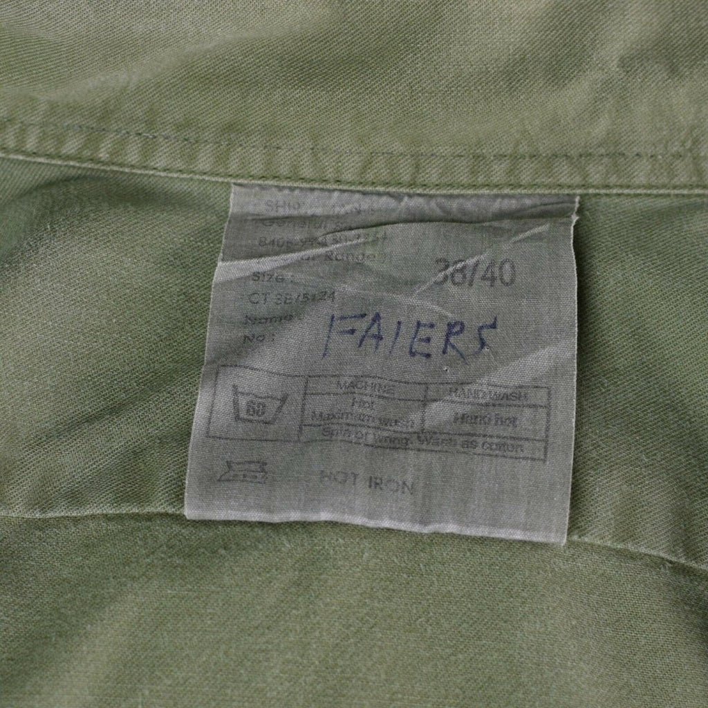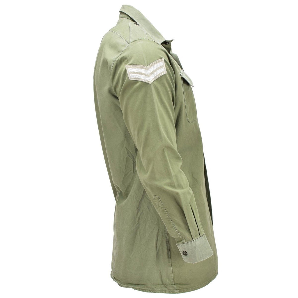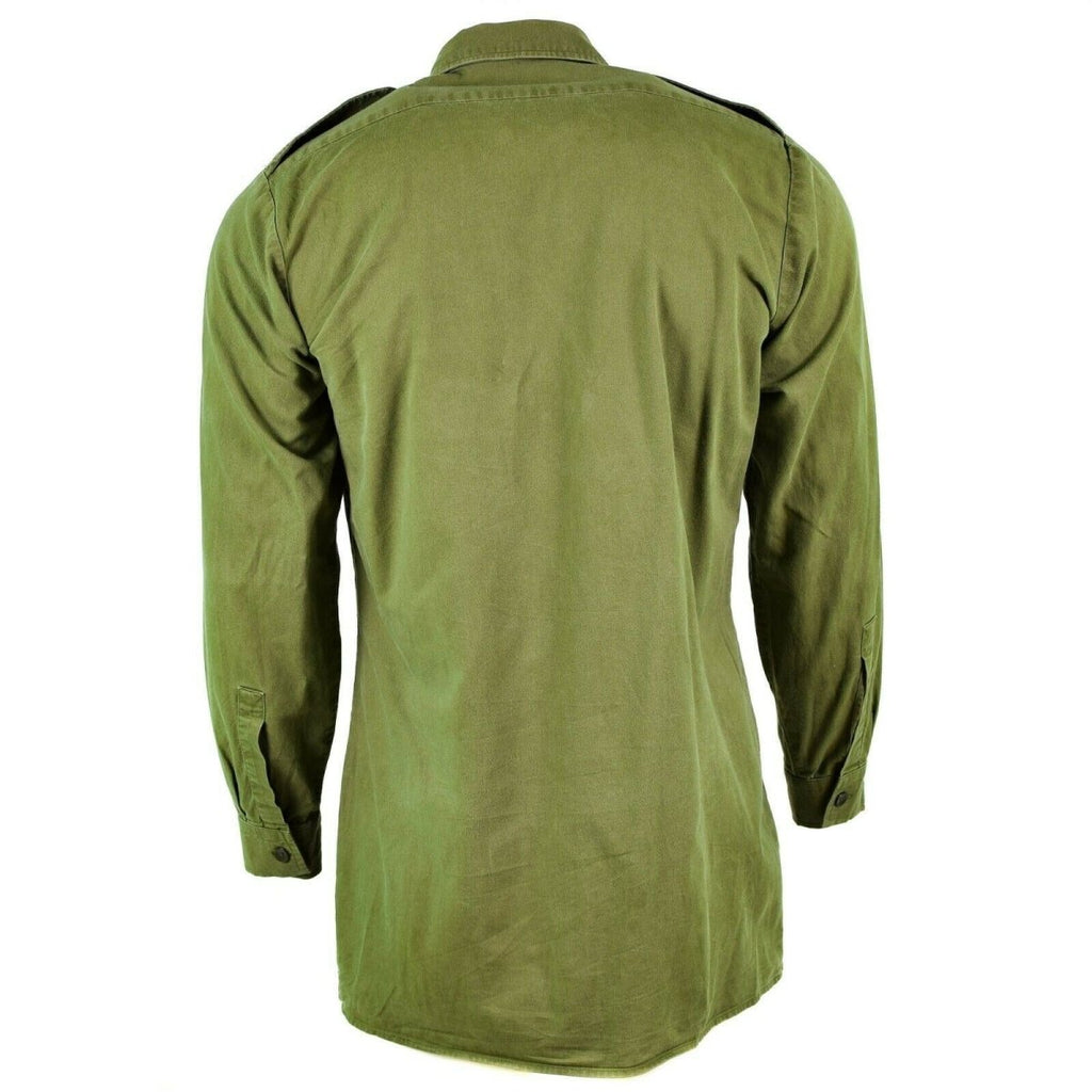 Maak kennis met het authentieke Britse formele militaire overhemd in olijfgroen, een tijdloos kledingstuk voor formele gelegenheden. Met zijn lange mouwen, knoopmanchetten, epauletten en borstzakken straalt dit overhemd elegantie uit.
