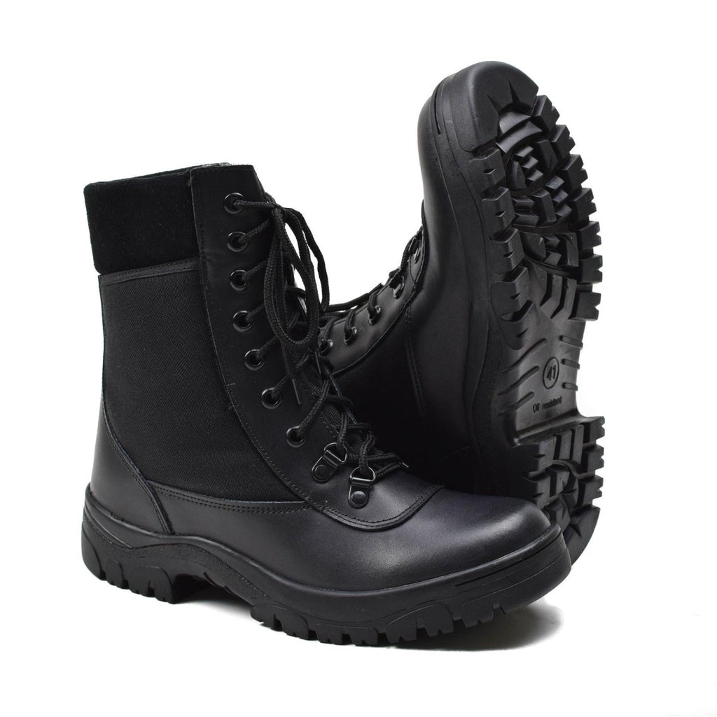 - Premium lederen constructie: Bovendien zijn deze laarzen gemaakt van hoogwaardig zwart leer en zorgen ze voor een gepolijst uiterlijk en bieden ze de duurzaamheid die nodig is voor militair gebruik. Daarom is het premium leer zowel ademend als lichtgewicht, wat bijdraagt aan het algehele comfort tijdens langdurig dragen.