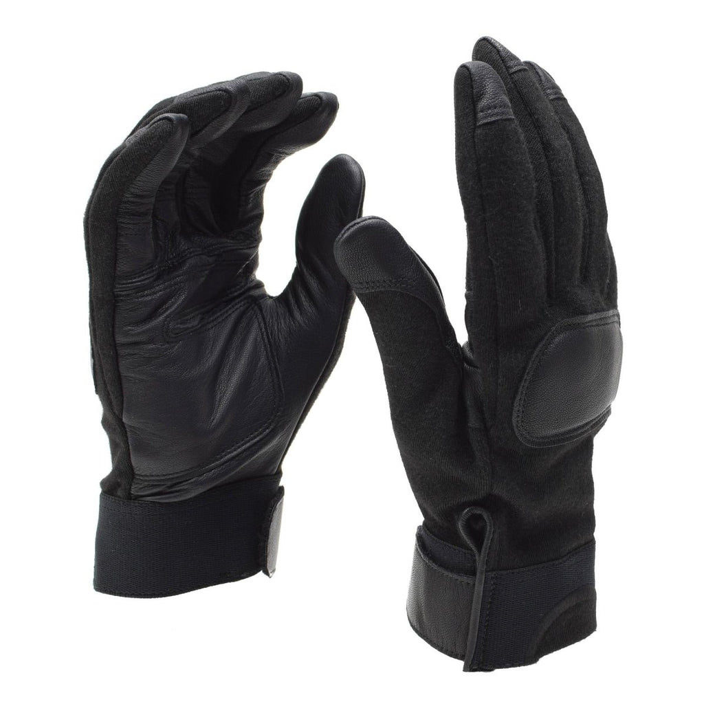 • Deze handschoenen zijn gemaakt van een duurzame mix van 46% leer en 54% meta-aramide en combineren flexibiliteit en sterkte. Deze unieke materiaalmix verbetert zowel het comfort als de veerkracht, waardoor u onder uiteenlopende omstandigheden effectief kunt werken. Het strakke zwarte ontwerp maakt deze handschoenen veelzijdig en gemakkelijk te combineren met elke tactische uitrusting.