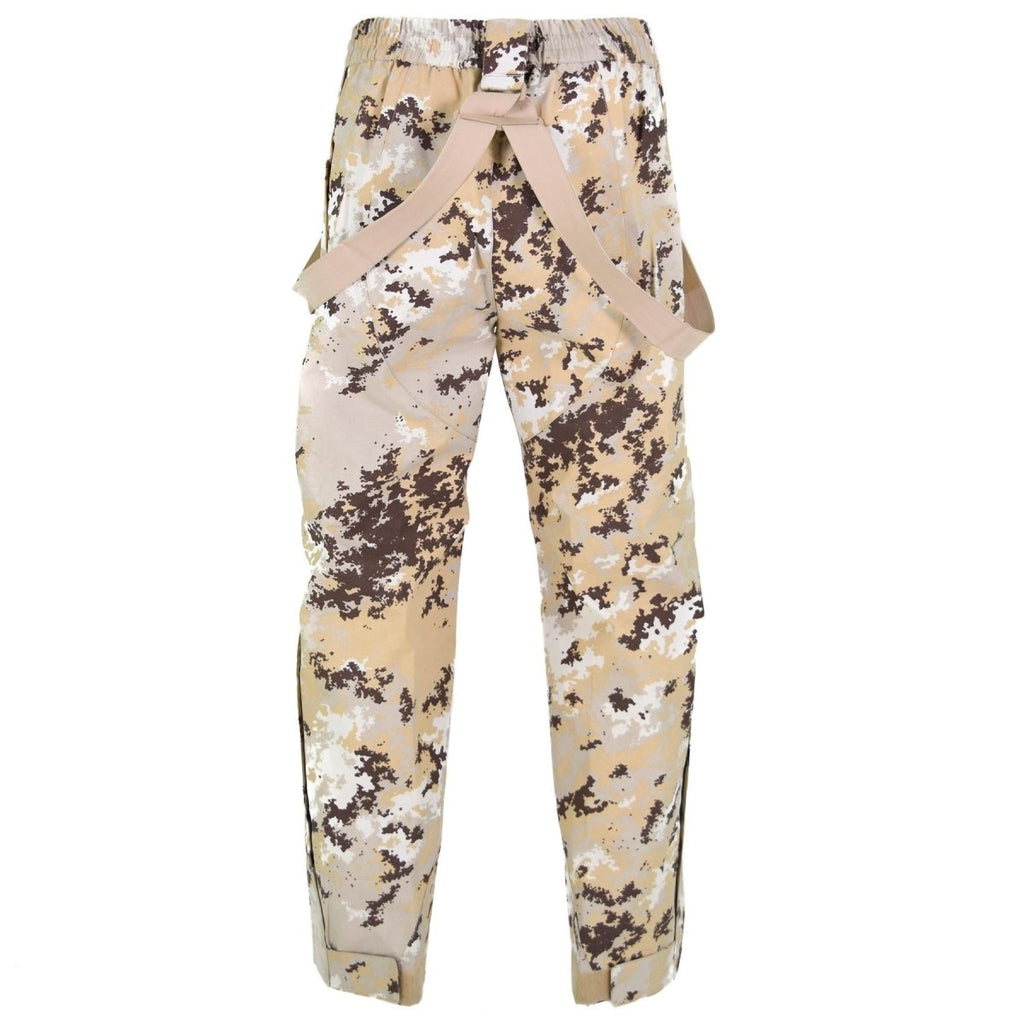 Blijf droog en comfortabel met deze originele Italiaanse Air Forces bretelregenbroek in Vegetata Desert Camo.