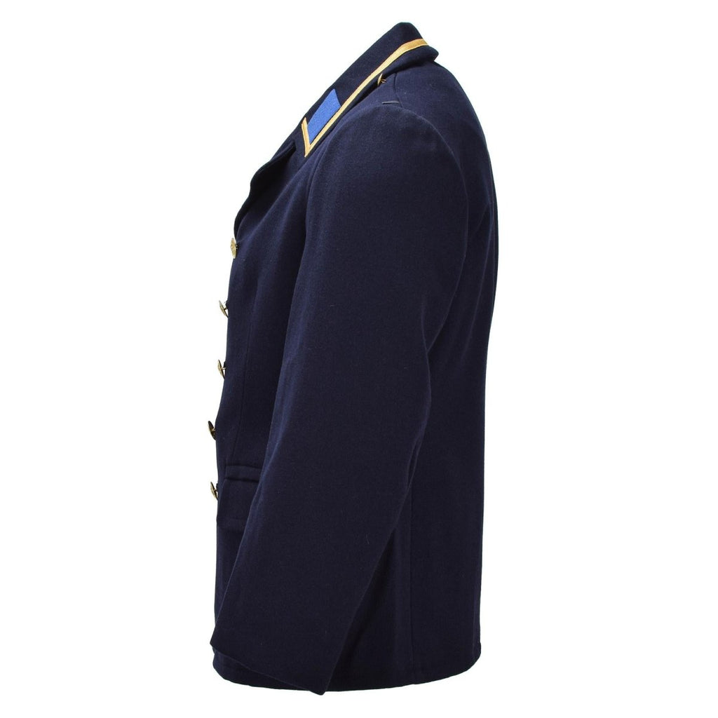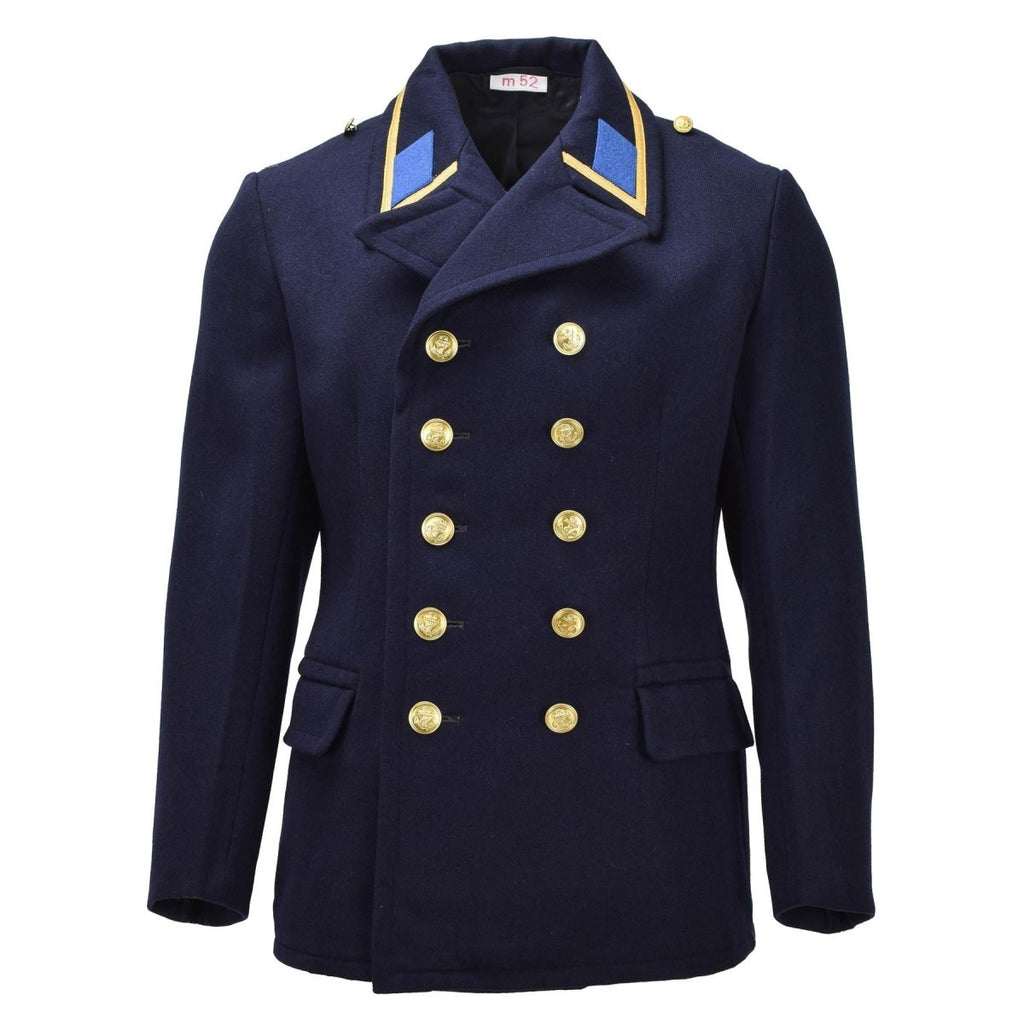 De overjas is gemaakt in een klassieke donkerblauwe kleur en heeft een traditionele voorkant met dubbele rij knopen, metalen knopen, gestructureerde schouders en een lange snit die is ontworpen om warmte en bescherming te bieden bij koud weer. De zware buitenstof en het formele militaire maatwerk maken hem geschikt voor paradegebruik, dienstkleding of ceremoniële gelegenheden.