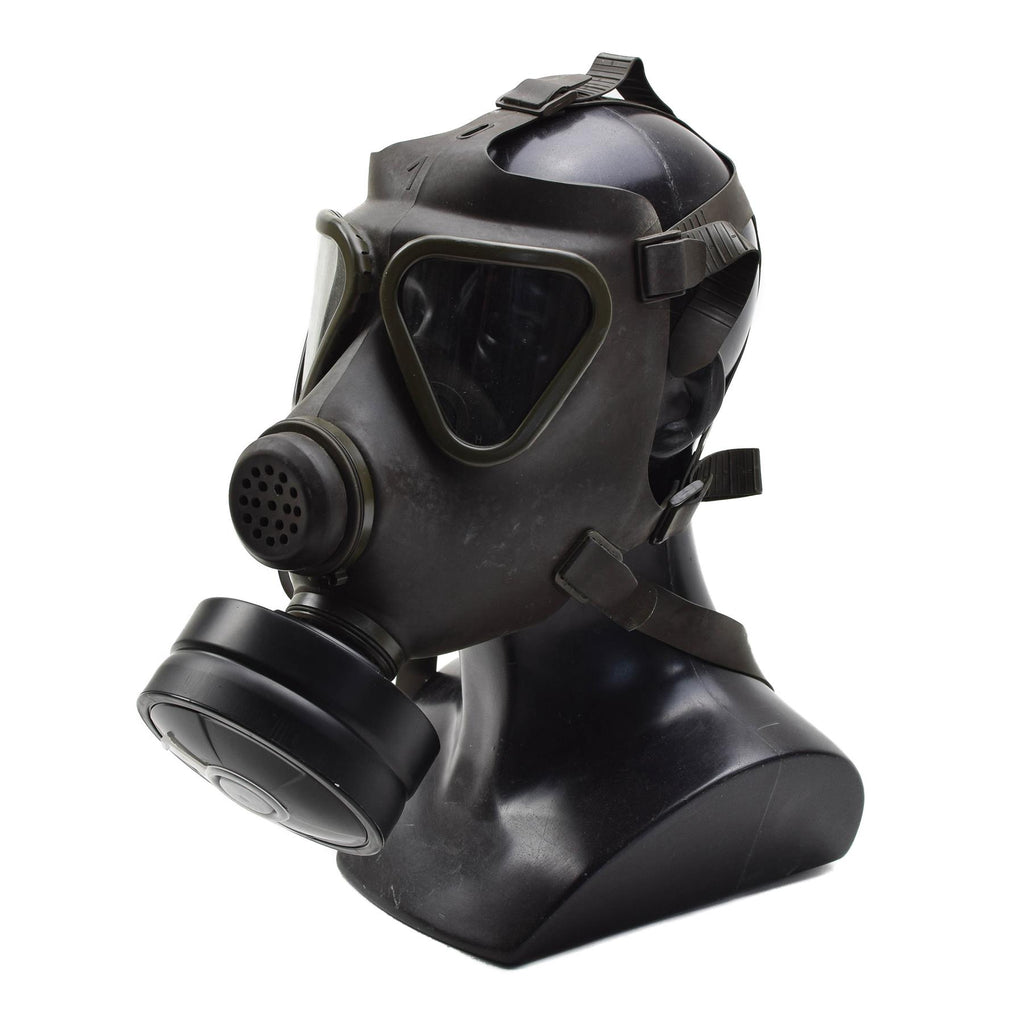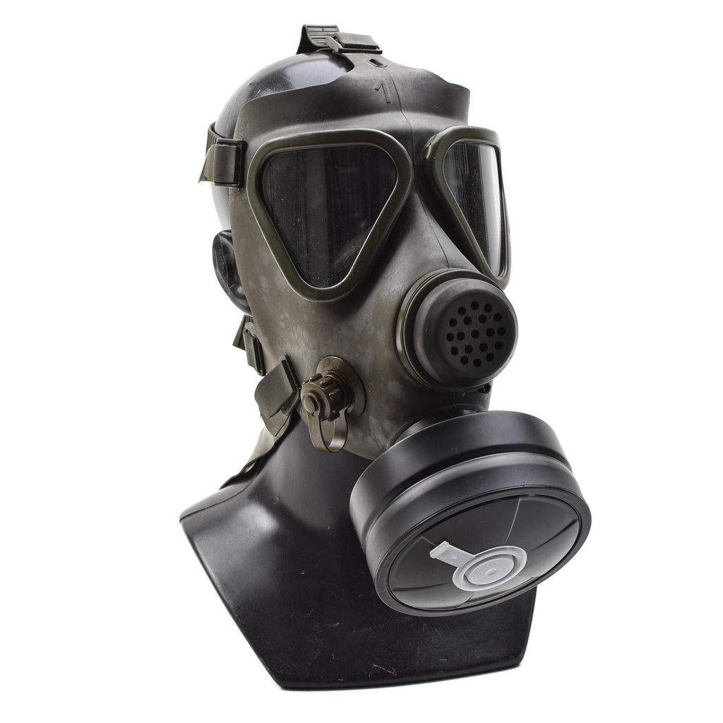 De set bevat het gasmasker, de originele olijfkleurige opbergtas en het filter. Het masker heeft een duurzaam rubberen lichaam, verstelbare hoofdbanden voor een veilige pasvorm en een klassiek militair ontwerp dat het tot een uitstekend verzamel- of displaystuk maakt.