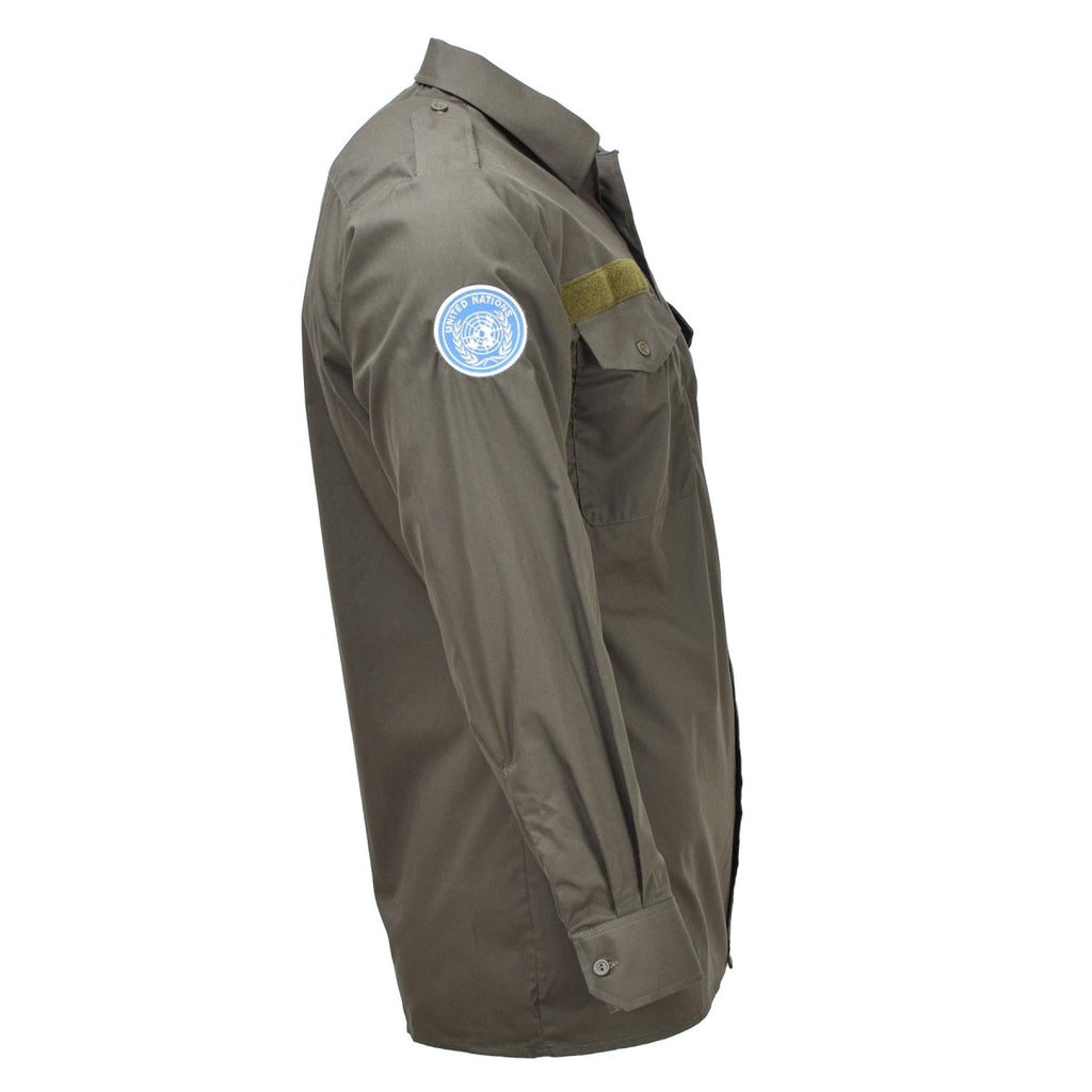 - Dit militaire overhemd is ontworpen met het oog op functionaliteit en beschikt over schouderepauletten, die een vleugje authenticiteit toevoegen en gemakkelijke identificatie mogelijk maken. Het insigne van het Oostenrijkse leger siert trots de schouder, toont de oorsprong ervan en voegt een uniek element toe aan het ontwerp.