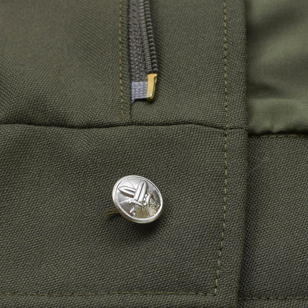 • Daarom bieden zilverkleurige knoppen een verfijnde aanraking, als aanvulling op de olijfkleur van de jas. Deze metalen accenten creëren een slanke look die de ruige militaire esthetiek in evenwicht houdt.